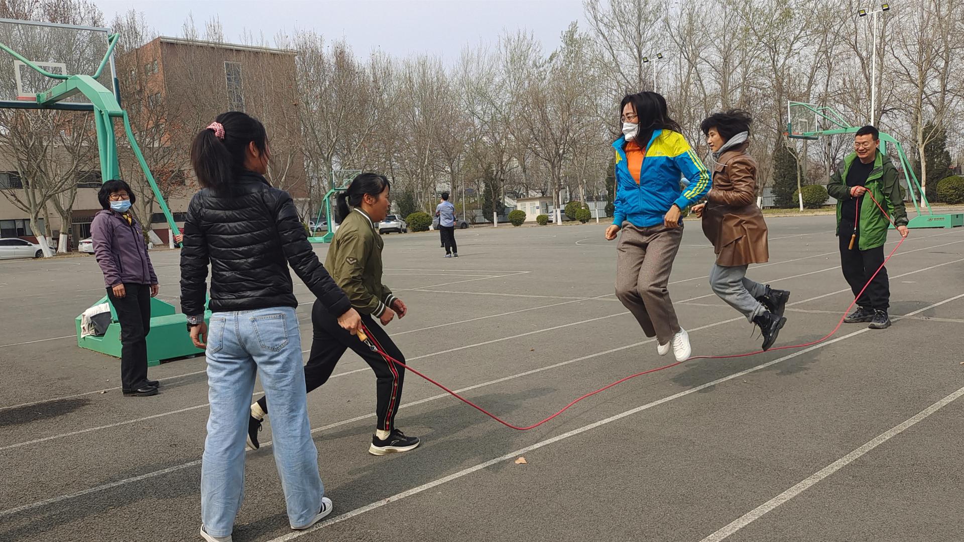 舍西区篮球场,参与藏书楼分会举行的“拥抱秋天,乐享安康”健身疏通会。