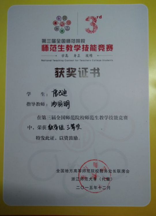 球友会学子在第三届全国师范院校师范生教学技能竞赛中获奖